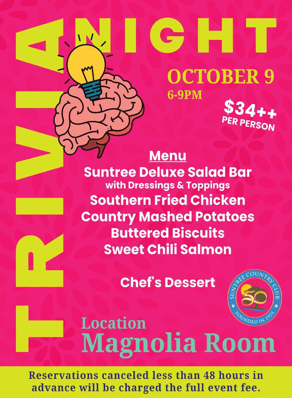 It’s hard to believe another season has flown by at Suntree! It was great to see so many of you out enjoying the Club over the summer — whether enjoying the fireworks and pool festivities for the 4th of July, serving up dinks during the XGlosive Pickleball event, or dancing the night away to Hot Pink during Club Night.