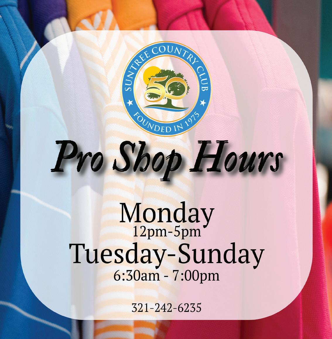 As we wave goodbye to the heat, we welcome the cooler temperatures. With the Men’s & Ladies’ Club Championships moving to the spring, we still have a busy couple of months on our Golf Calendar - starting with the Senior Club Championship on October 18-19. Please visit the Golf Corner of the Golf Central tab Suntree.com website for a complete listing of our events for the rest of the 2025, as well as the Tournament Registration button to sign up.