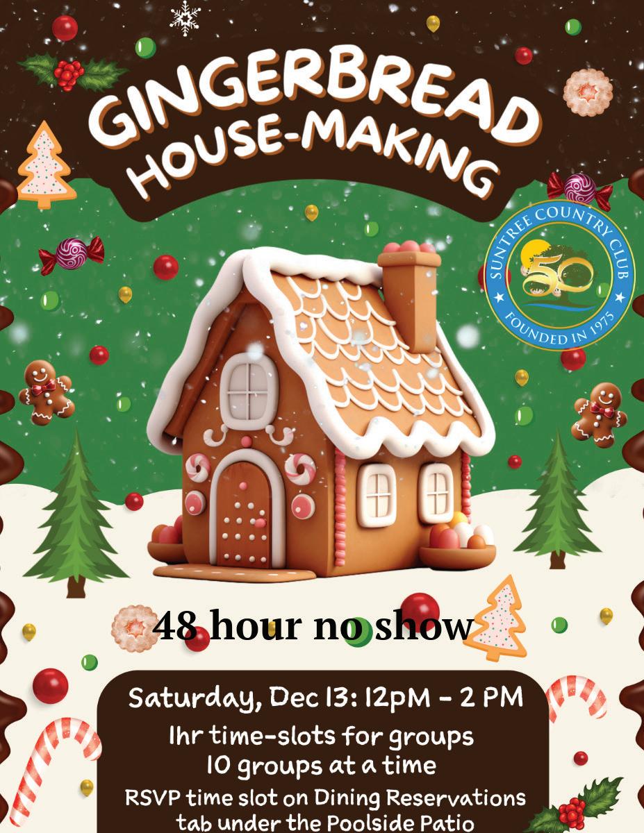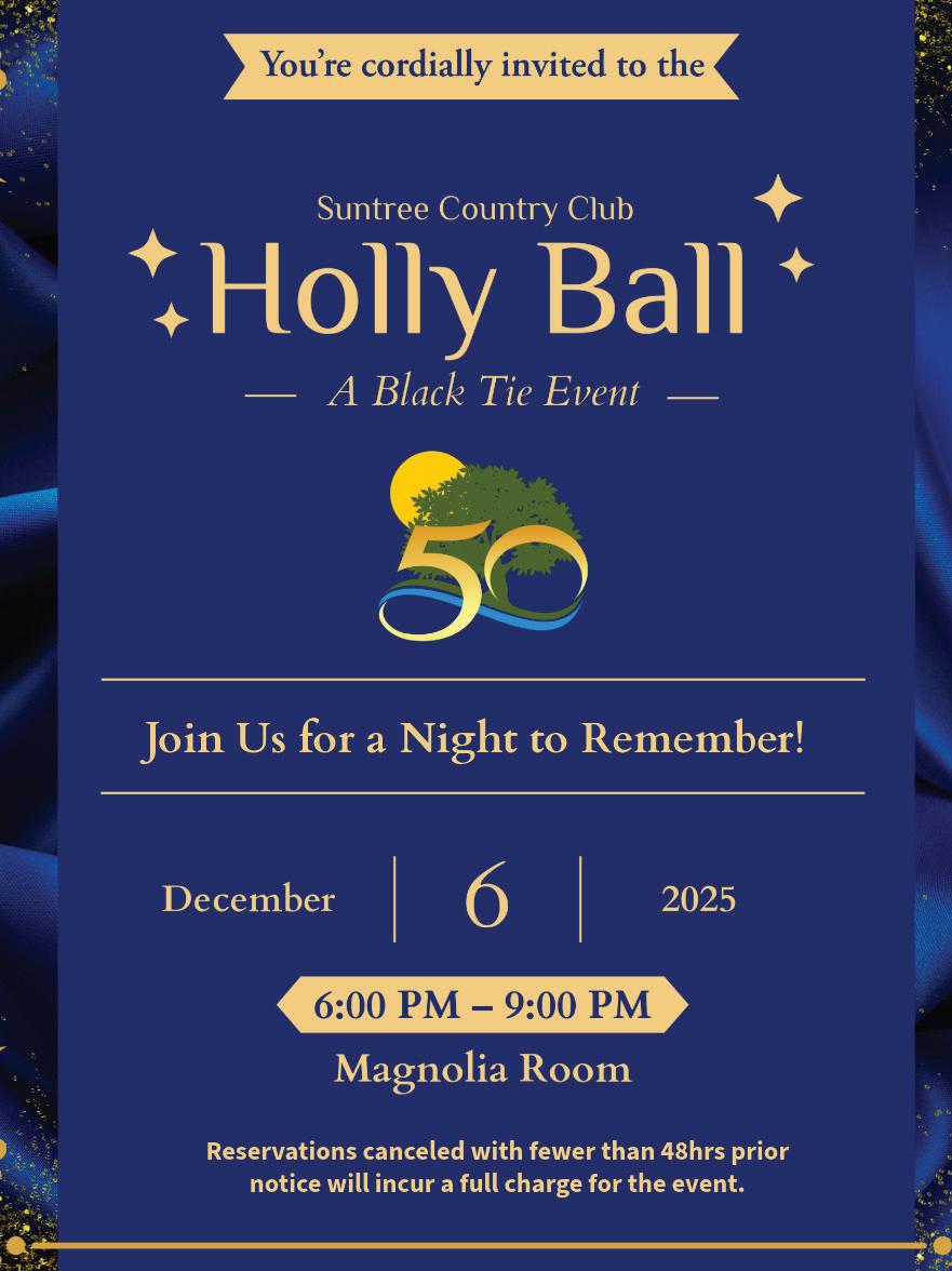 I am looking forward to a great holiday season at the Club! Our calendar is full of events the next three months. Sign up early to get your spot! Just click on the calendar on our Suntree website to find the event date and more information.