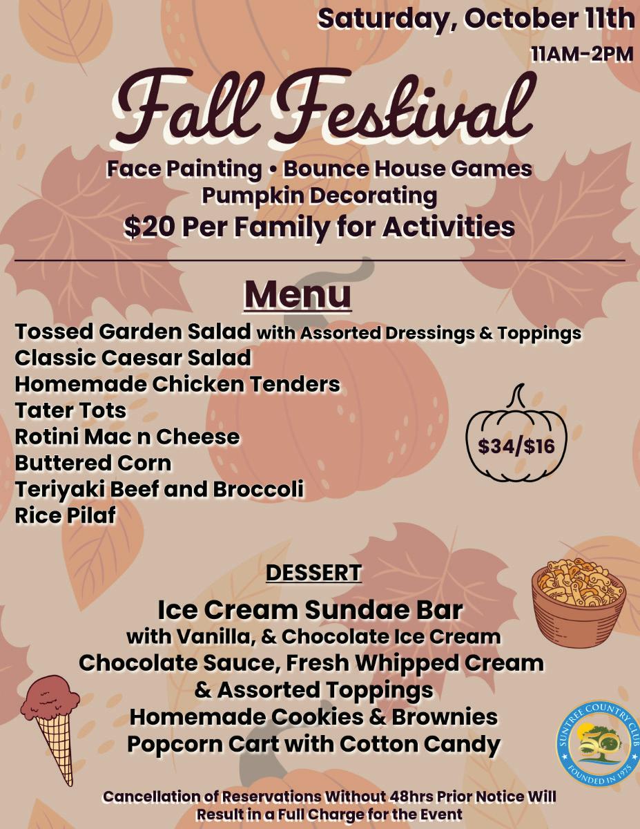 October 11 is our annual Fall Festival. Pumpkin painting, bounce houses, face painting and games!