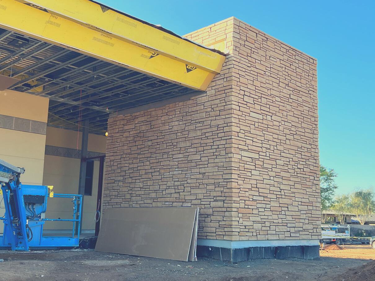 Sun Valley attached and grouted all the Special Frank Lloyd Wright designed Biltmore Block in accent bands around the entire building. We also did all the stone at the stairwells and parapets.