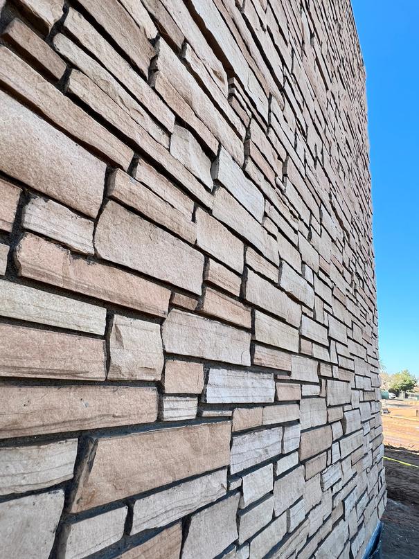 Sun Valley adjuntó y rejuntó todo el Biltmore Block especial diseñado por Frank Lloyd Wright en bandas decorativas alrededor de todo el edificio. También hicimos toda la piedra de las escaleras y parapetos.