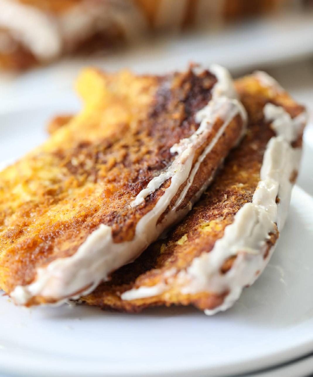 10. In the meantime, prepare your cinnamon glaze by whisking to the powdered sugar, cinnamon, vanilla, and salt. Add as much milk as needed, one tablespoon at a time, to create a glaze that can be drizzled.