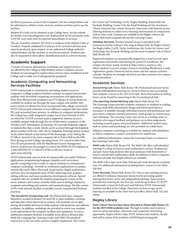 SUNY Schenectady uses an array of commercially successful Windows applications, programming language compilers and curriculumspecific computing tools in order to expose students to contemporary computer technology. Network or workstation applications on campus include Microsoft Office, Microsoft Visual Studio, Maple mathematics software, Java Development tools, HTML authoring tools, graphics editing software, and music production development software. Special computer labs are available for students preparing for careers in the music industry and various scientific fields such as biology, chemistry, computer networking and systems, and nanotechnology. The labs consist of PCs with network facilities to parallel current computerized business practices. The Academic Computing Lab. The Elston Hall main computer laboratory, located in Rooms 529 and 530, is open weekdays, evenings and Saturdays when classes are in session. Lab assistants are on duty during all available lab hours to help students with hardware and software problems. In addition, workshops are provided to orient new students to the operations of the computer facilities and equipment. Access to additional computer facilities is available in the library, division labs, Math lab, Language lab, Learning Center and TRIO. Personalized instruction in the use of the systems is highly emphasized. The Center