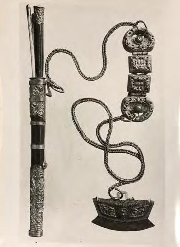 Mannerheimin tuoma mongoliveitsikokonaisuus. Lahjaksi annettu lienee ollut samantyyppinen.