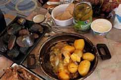 Vieraalle tarjotaan parasta. Runsaassa pitopöydässä on tarjolla vihanneksia (vieraan toivomuksesta), italiansalaattia, keitettyä hevosenlihaa, voita, juustoa, buuzeja (lampaanlihatäytteisiä taikinanyyttejä), tomaatti- ja muita säilykkeitä, keksejä, konvehteja, limonadia ja votkaa.