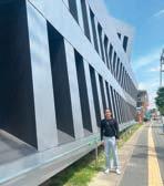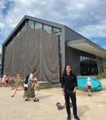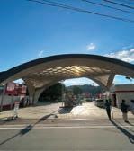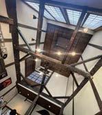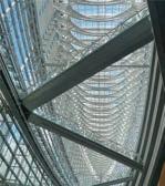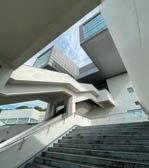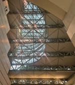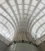 The structure features a wide-span steel truss, resembling a bridge, connecting two parts of the museum. It begins at the ticket booth and ends at the auditorium