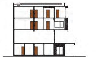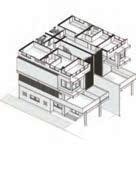 The design began with a rectangular shape overlapped by an L-shaped box, which was then refined through addition and subtraction to achieve proper proportions. Once developed, the form was mirrored to create a symmetrical shape for a semi-detached house. The final design allocated spaces based on volume