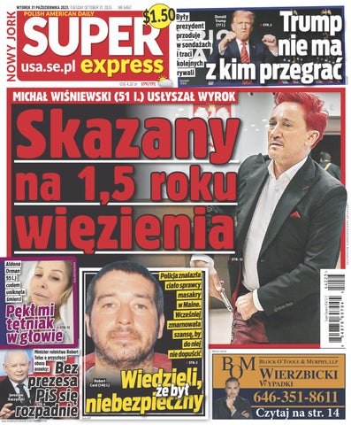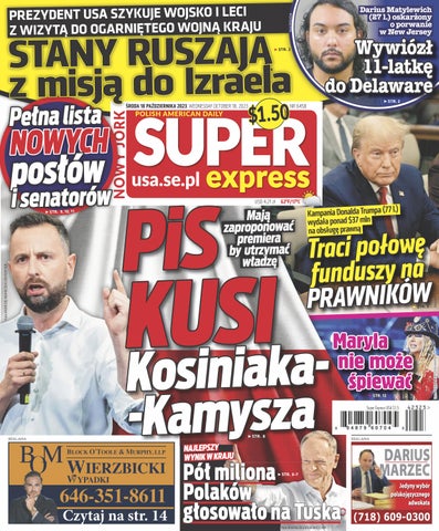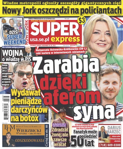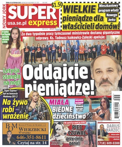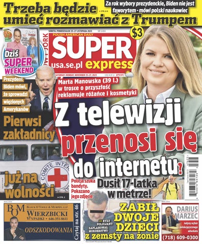 Super Express Nowy Jork” to jedyny polski dziennik w USA skierowany do mieszkającej w USA Polonii. Gazeta zawiera aktualne wiadomości z Polski, ale też informacje lokalne, relacje z życia Polonii i zapowiedzi lokalnych wydarzeń. Całości dopełnia rozrywka, humor, krzyżówki, opinie oraz ogłoszenia lokalnych firm i osób prywatnych. Dzięki największej polsko-amerykańskiej sieci dystrybucji „Super Express Nowy Jork” jest dostępny w polskich i amerykańskich sklepach na obszarze nowojorskiej metropolii. Nasz e-mail: sales@seusa.info