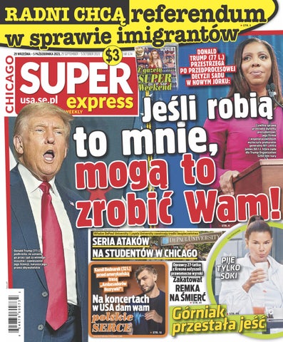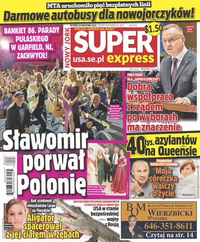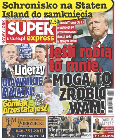 Super Express Nowy Jork” to jedyny polski dziennik w USA skierowany do mieszkającej w USA Polonii. Gazeta zawiera aktualne wiadomości z Polski, ale też informacje lokalne, relacje z życia Polonii i zapowiedzi lokalnych wydarzeń. Całości dopełnia rozrywka, humor, krzyżówki, opinie oraz ogłoszenia lokalnych firm i osób prywatnych. Dzięki największej polsko-amerykańskiej sieci dystrybucji „Super Express Nowy Jork” jest dostępny w polskich i amerykańskich sklepach na obszarze nowojorskiej metropolii. Nasz e-mail: sales@seusa.info