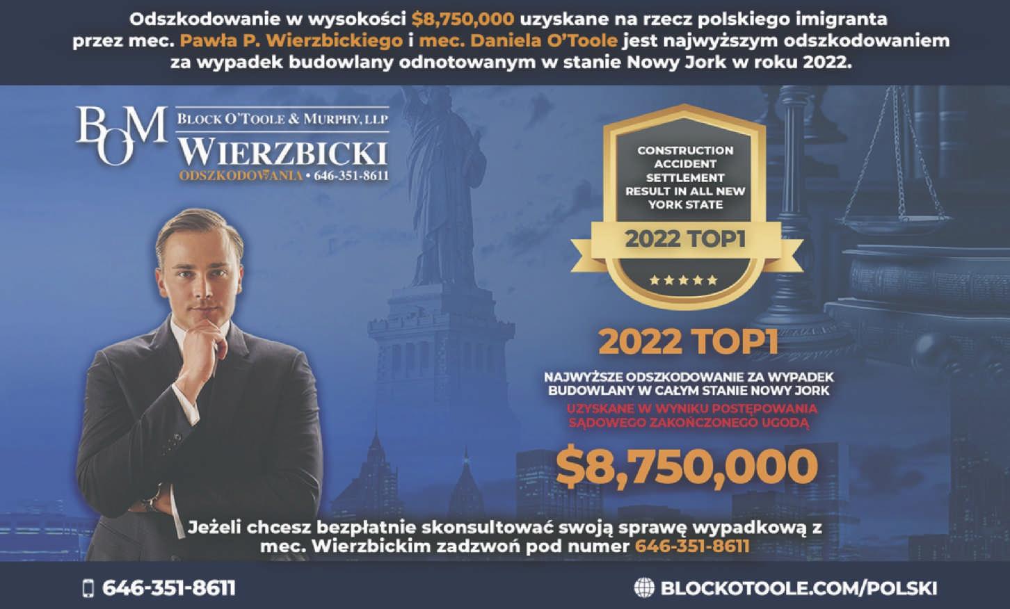 Katarzyna Skrzynecka Gąsowski MARZEC DARIUS (718) 609-0300 Jedyny wybór polskojęzycznego adwokata REKLAMA foto AP 32623 Super Express USA $3 SOBOTA–PONIEDZIAŁEK 12–14 SIERPNIA 2023 NR 6411 SATURDAY–MONDAY, AUGUST 12–14, 2023 USD 4,05 zł 86OF/30OC NOWY JORK POLISH AMERICAN DAILY usa.se.pl zachmurzenie małe zachmurzenie umiarkowane mżawka mgła pochmur no opady deszczu opady deszczu i burze opady śniegu z deszczem opady śniegu z deszczem przejaśnienia niewielkie (możliwe) opady śniegu wicher, tajfun, Dziś Super Weekend popularny kurort Maui, zmieniło się w góry popiołu i zwęglonego gruzu. Spłonęło ponad 1000 budynków $3 REKLAMA $20 mld dla Ukrainy $4 mld na kryzys PREZYDENT USA POPROSIŁ KONGRES O DODATKOWE FUNDUSZE TAKIEJ DEFILADY JESZCZE NIE BYŁO Polska armia pręży muskuły ÷ STR. 12–13 Czytaj na str. 46 ODSZKODOWANIE W WYSOKOŚCI $8,750,000 UZYSKANE NA RZECZ POLSKIEGO IMIGRANTA foto PIOTR GRZYBOWSKI >> Turystyczny raj unicestwiony >> 55 ofiar i 1000 zaginionych po pożarach na Hawajach i Piotr Walczą okontrakt wPolsacie foto GAŁĄZKA/AKPA, PIĘTKA MIESZKO/AKPA ÷ STR. 36 Polskie rodzeństwo przed sąd za szturm Chicagowski policjant i jego siostra wybrali proces zamiast ugody z prokuraturą foto U.S. ATTORNEY’S OFFICE (2) ÷ STR. 4 Krajobraz KOSZMARZE PO ÷ STR. 5 ÷ STR. 2 DWAJ NOWOJORCZYCY POSZUKIWANI PO ZUCHWAŁEJ KRADZIEŻY NA ZLOCIE GRACZY W INDIANIE ÷ STR. 6 Zwinęli $300 tys. w kartach do gry