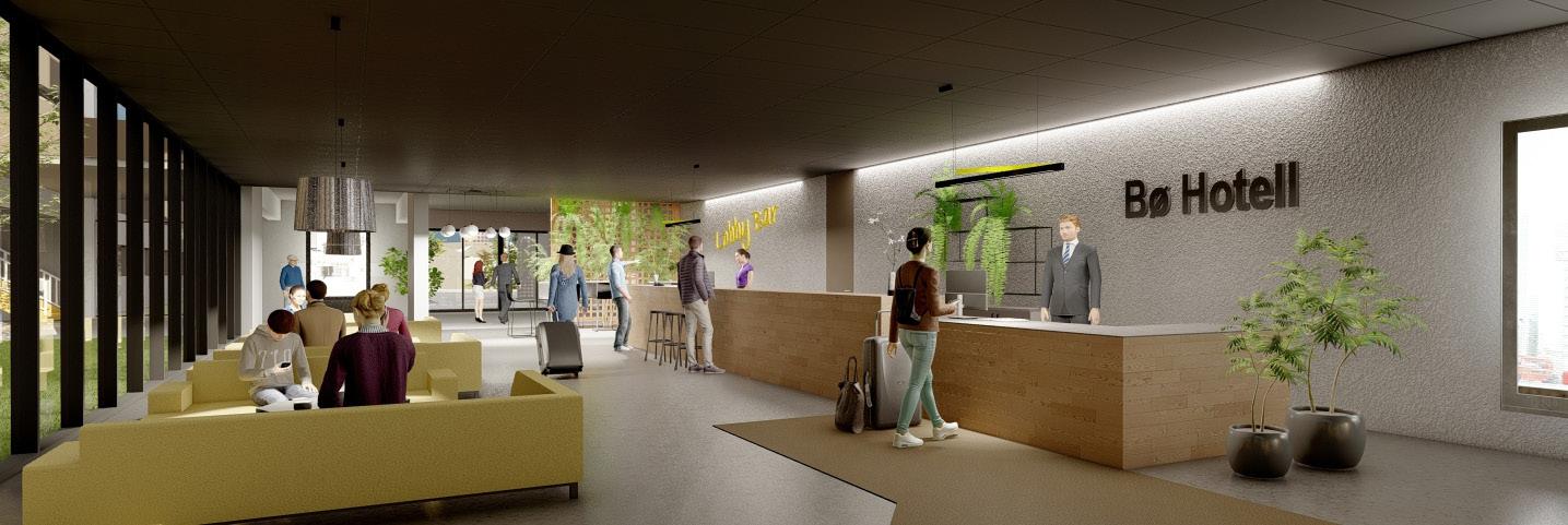 Bø Hotell tilbyr overnatting i lyse og romslige rom, per i dag med en kapasitet på 63 dobbeltrom, men 27 nye rom skal stå klart i løpet av 2025/26. Når leietakerne får gjester utenbys fra, er altså overnatting det minste problem.