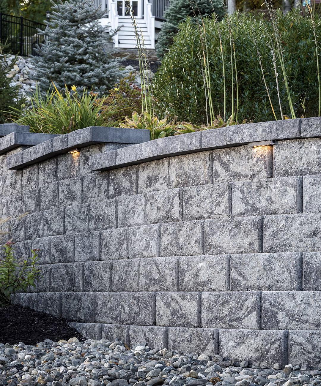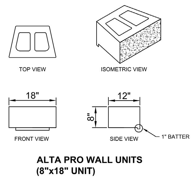 • Build gravity walls up to 3 feet high*, including the buried course.