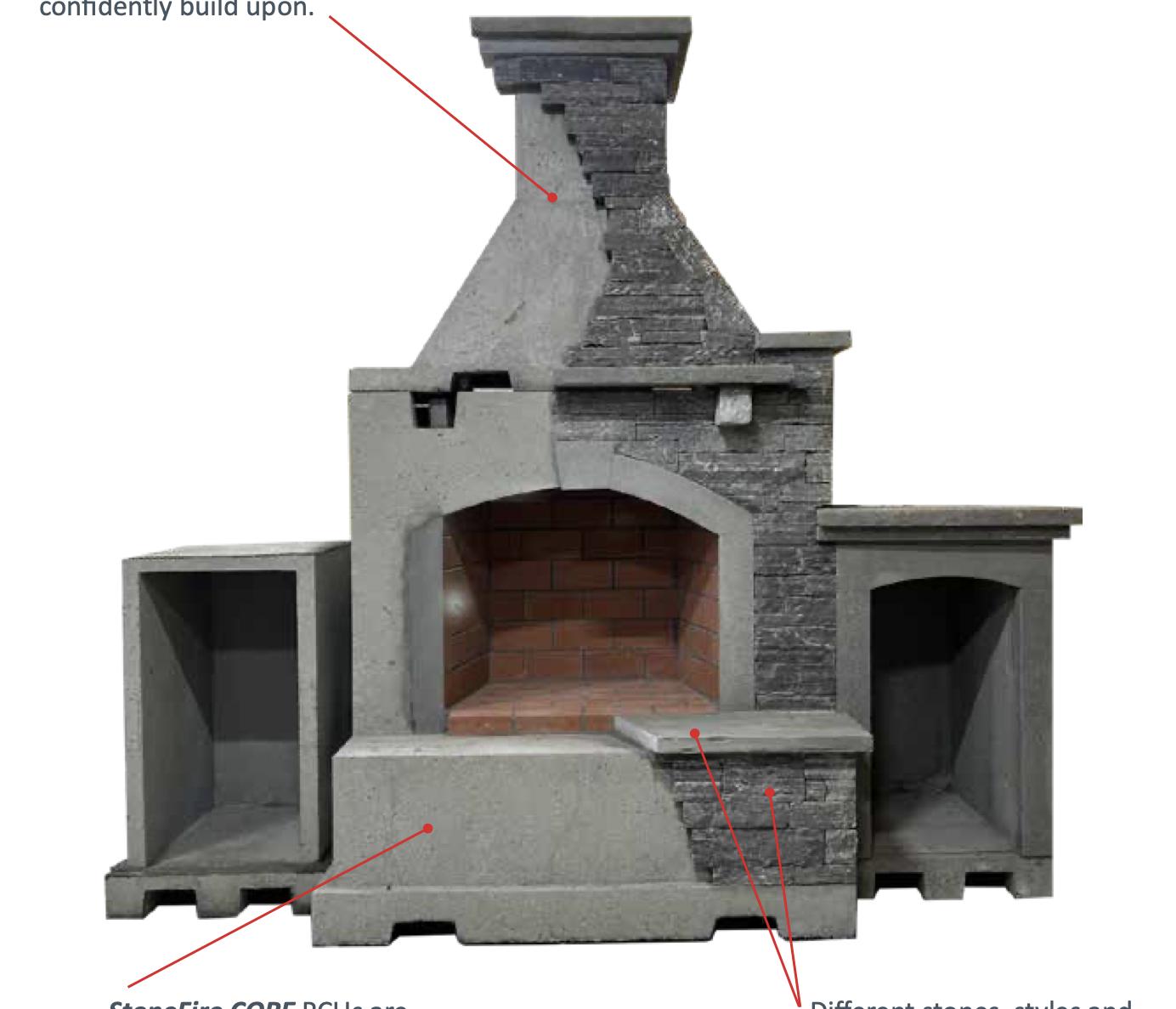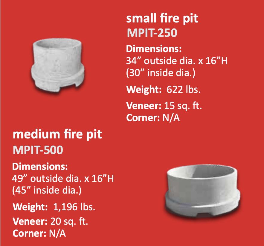 Multiple color options available Coordinating coping options and upgrades like a gas burner, smokeless insert or decorative lava rocks
