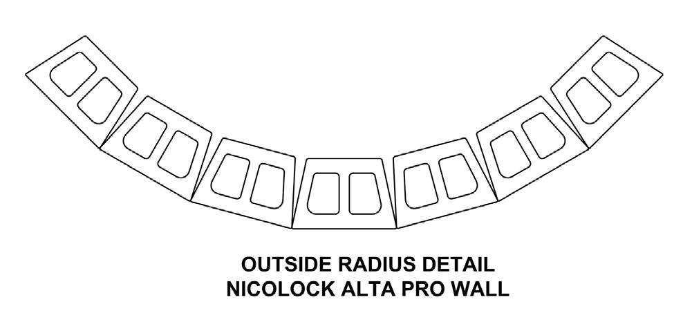 • Minimum outside radius, measured on the top course to the front of the units: 3 feet