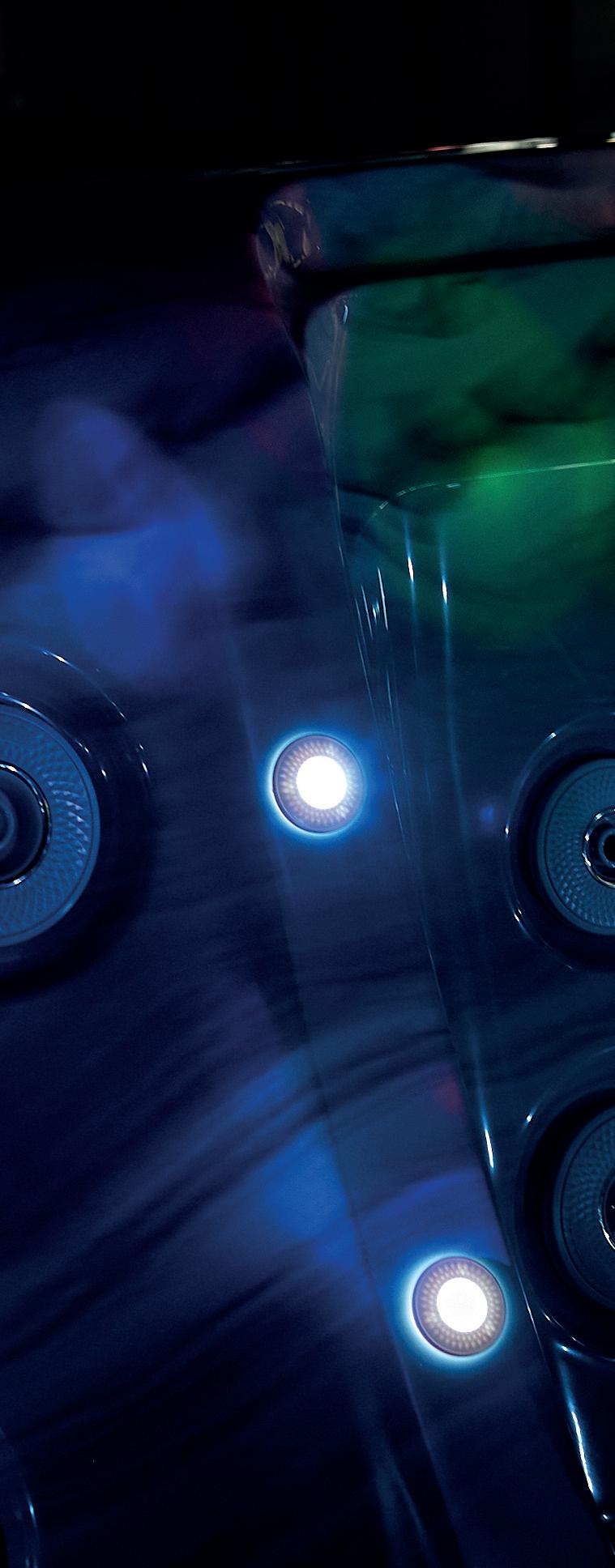 For a complete visual experience, EnviroLight adds exterior corner lighting panels that sync with the spa’s interior lights, creating a beautiful, color-rich environment that extends into the surrounding landscape.