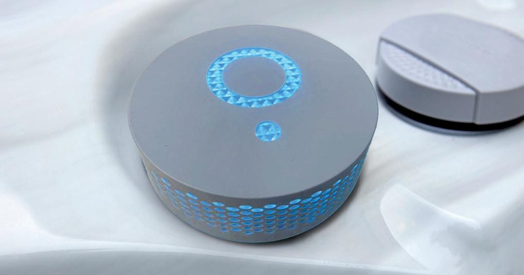 ChromoGlo features, multi-coloured lighting around the spa and within some of our features. You can bathe in a single colour or enjoy a soothing, gradual colour shift, perfect for setting a romantic mood. It also serves as a safety feature, illuminating the seating for easy navigation. Additional lights in the control valves and water features above the waterline further elevate the relaxing atmosphere.