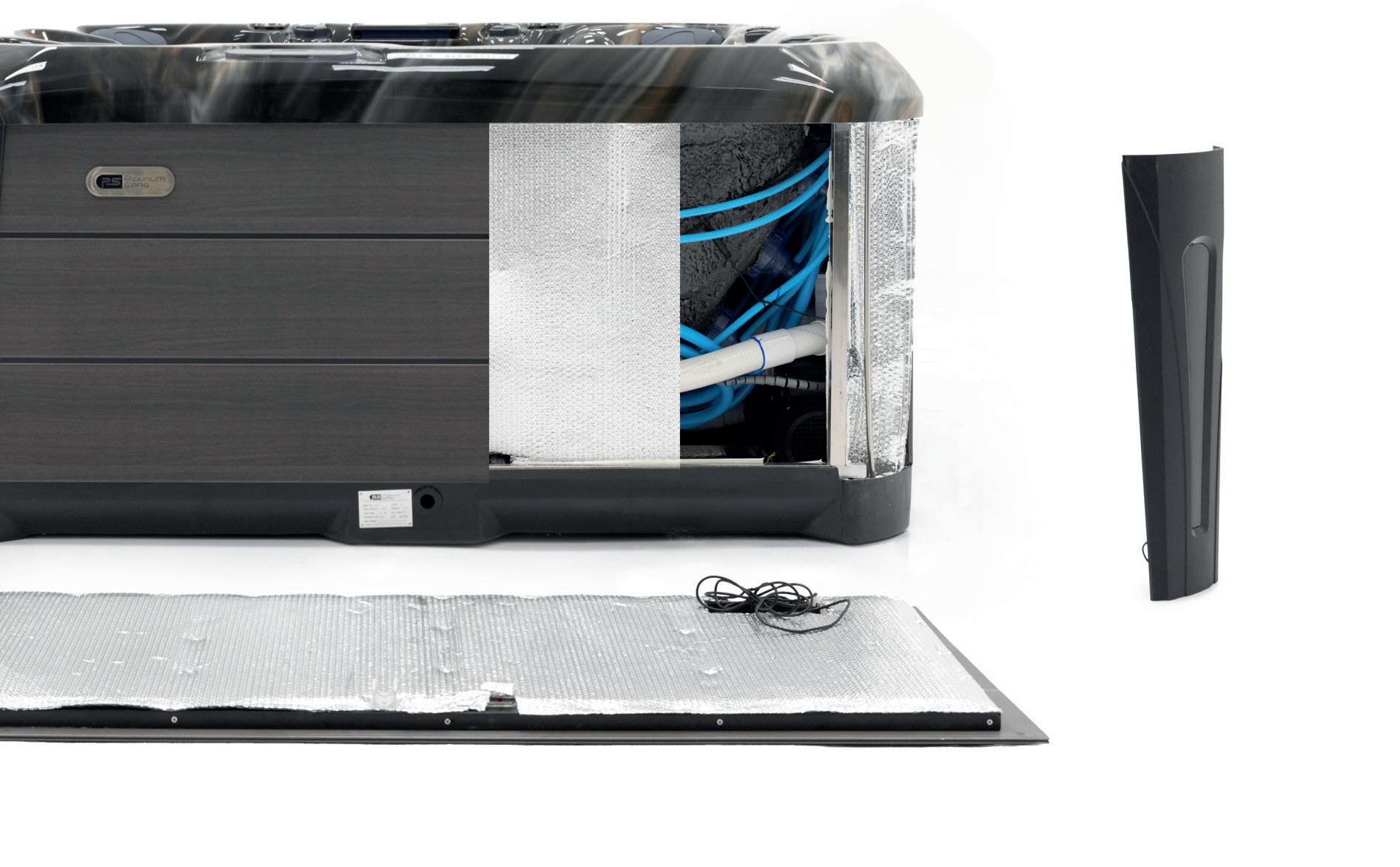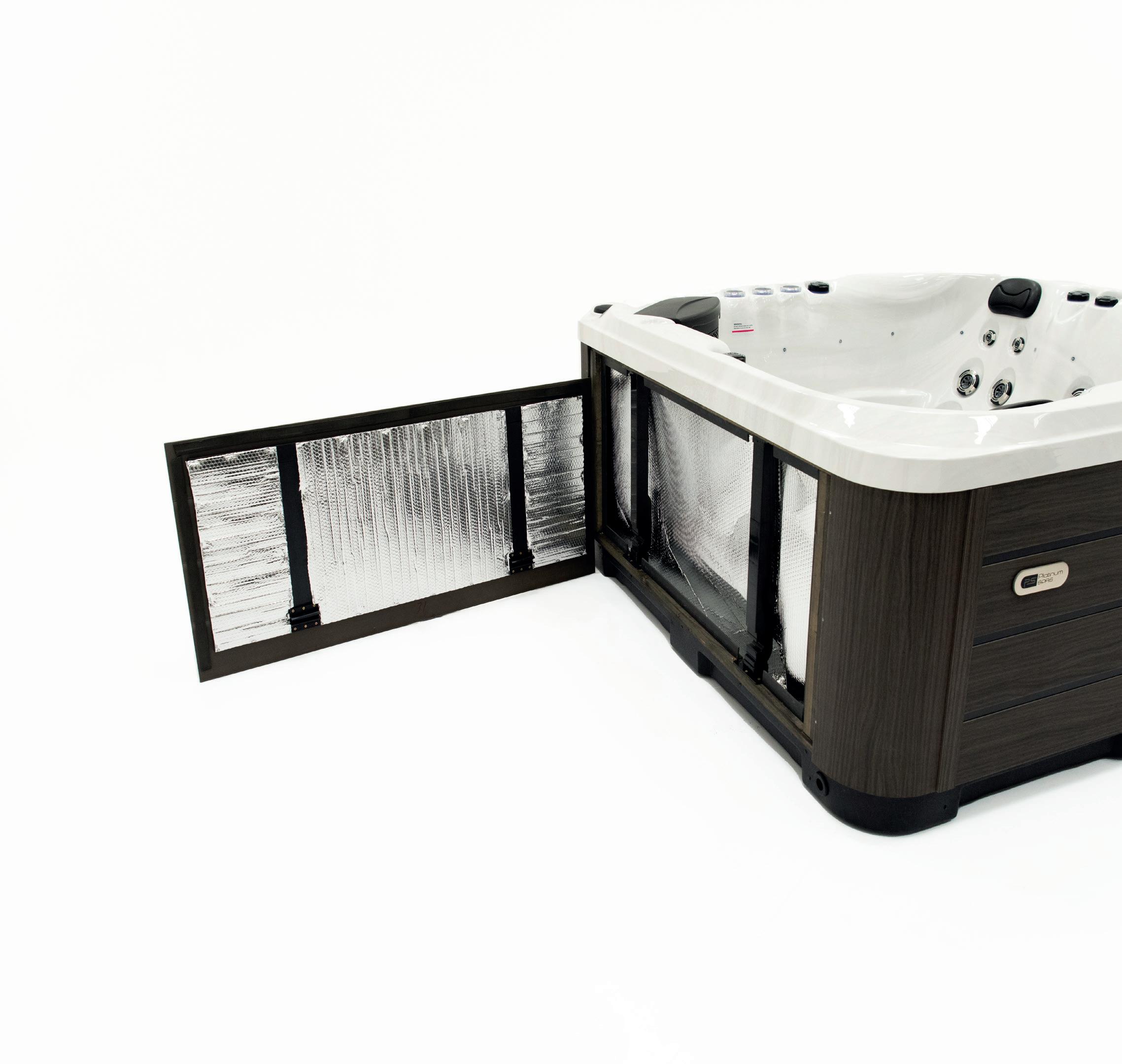 The addition of reflective insulating bubble foil acts as a thermal sock and is designed to eliminate the cold penetrating the inside of the spa by bouncing the cold away.