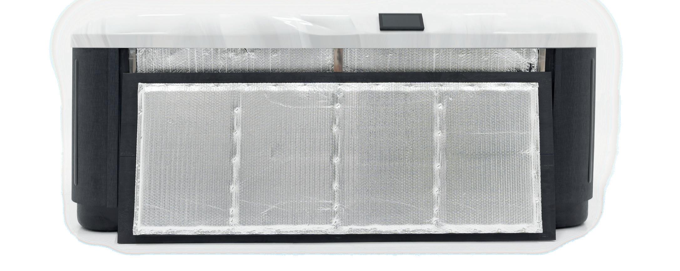 Die Zugabe von reflektierender, isolierender Luftpolsterfolie wirkt wie eine Wärmesocke und wurde entwickelt, um das Eindringen von Kälte in das Innere des Whirlpools zu verhindern, indem sie die Kälte abprallt.