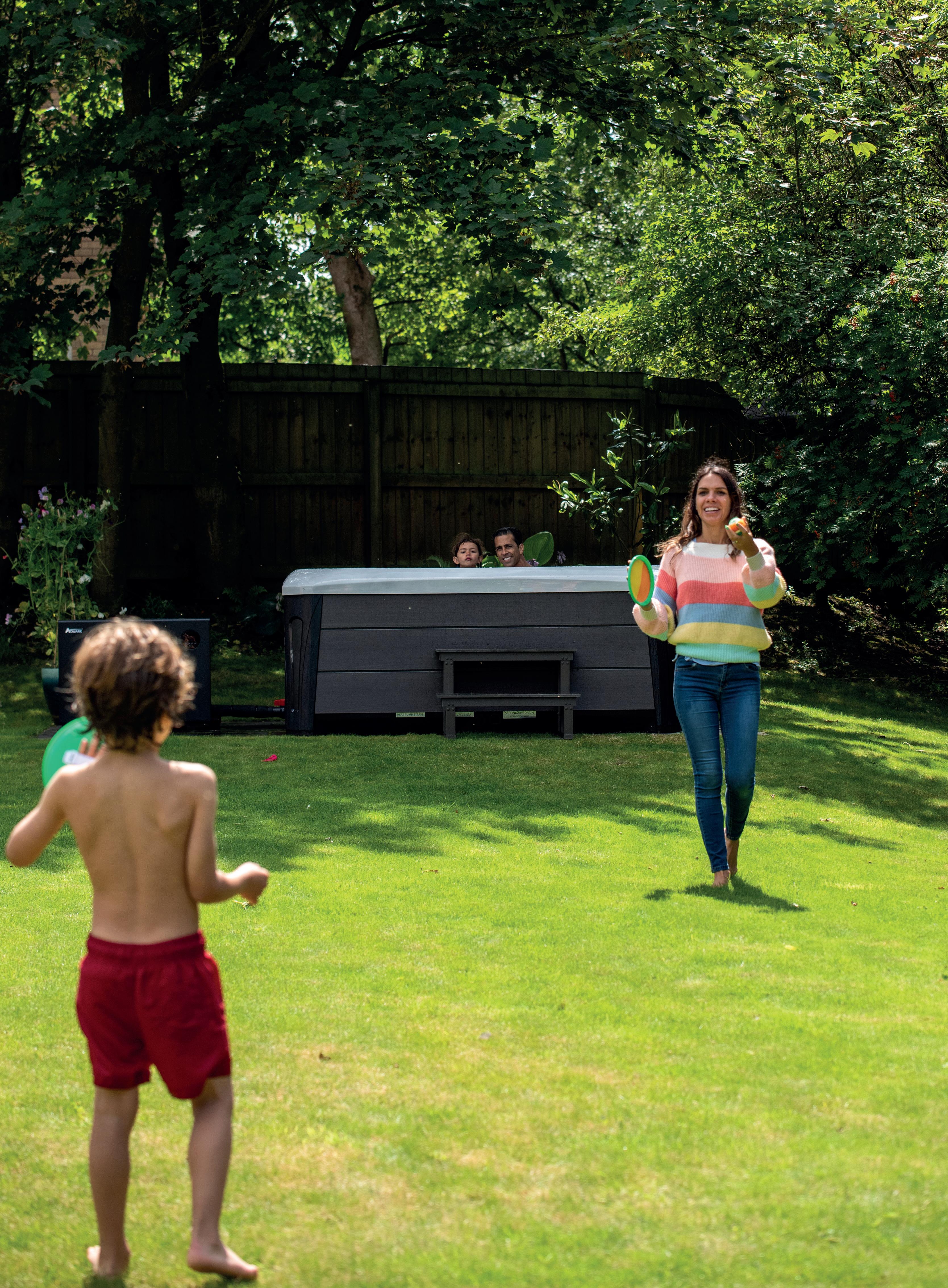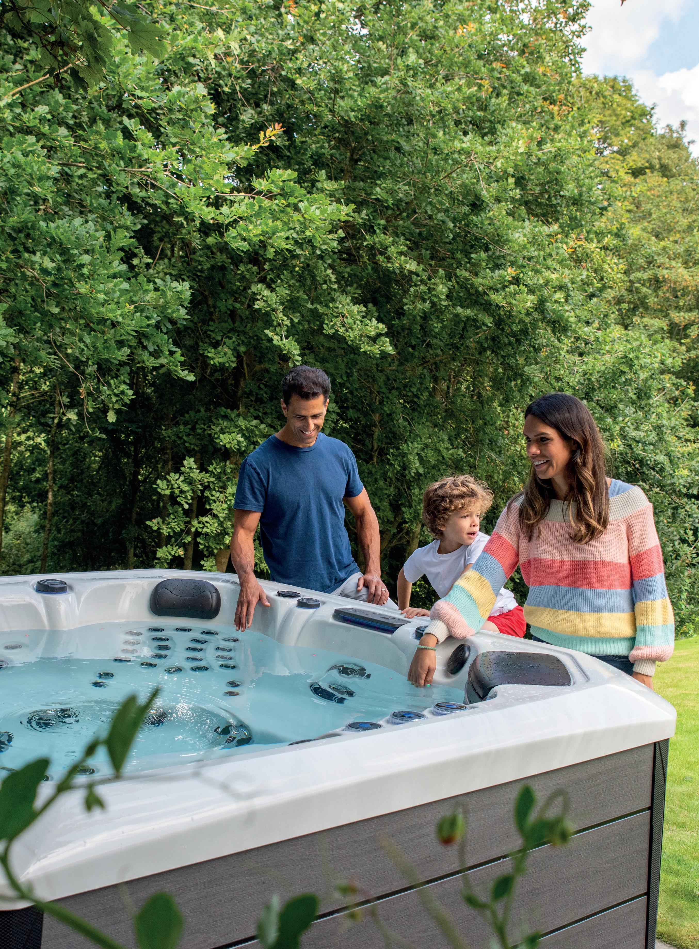“Wir könnten mit unserem Platinum Spa nicht zufriedener sein. Es ist die perfekte Art, sich nach einem langen Tag zu entspannen, und die Düsen sind unglaublich, um Muskelkater zu lindern. Die ganze Familie liebt es, und es sieht in unserem Garten umwerfend aus!”– Sophie und James T.