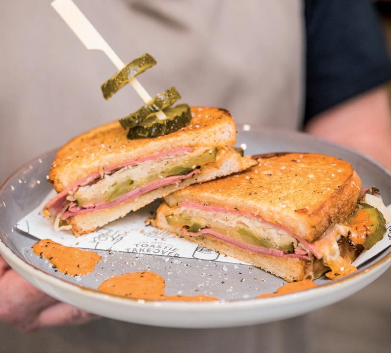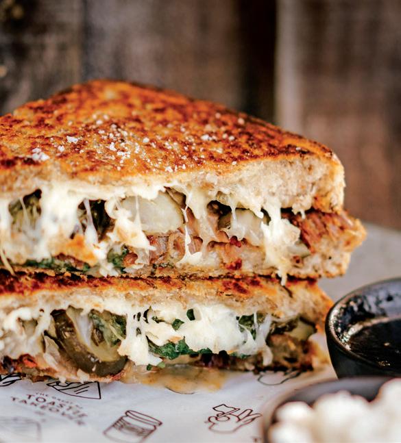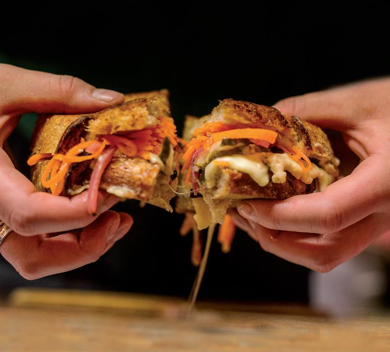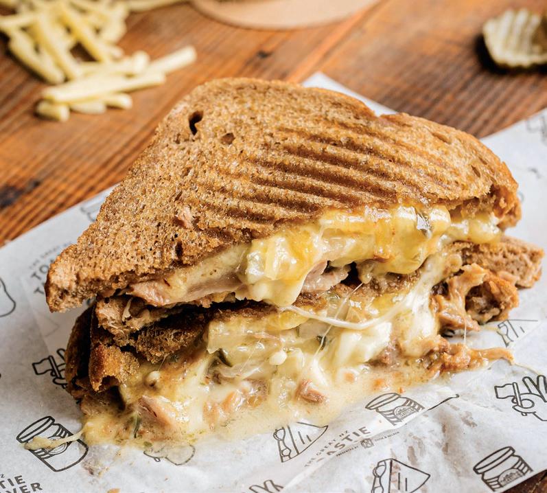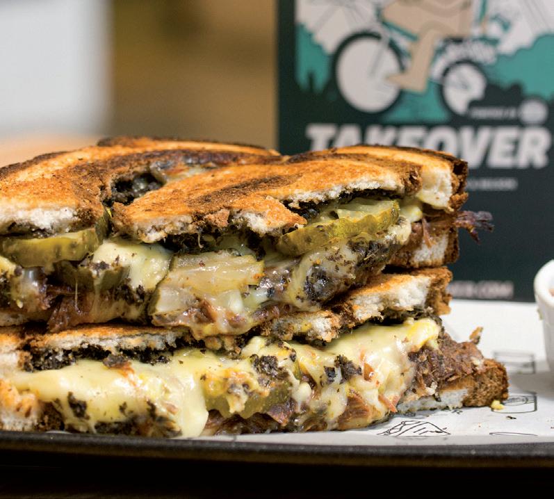 fried patty, Swiss cheese, bacon & onion jam, McClure’s Bread & Butter Pickles, and Best Burgers Special Sauce on house potato bread. Moving on to the Wellington region, Brew Union in Palmerston North created the Pork & Rye toastie, which included pickled pork, jalapeno, date and smoked gouda cheese sauce, American mustard mayo, and McClure’s Sweet & Spicy Pickles on rye bread. The Offering in Greytown’s Beef Greytown (Our take on a classic) included a four-cheese blend with Parkvale mushrooms, onion, and baby spinach, thyme and parsley to form a spread, French mustard, pulled hot smoked rump beef with a chipotle BBQ sauce, McClure’s Bread & Butter Pickles, white cheese sauce, all nestled between toasted marble rye bread.