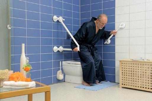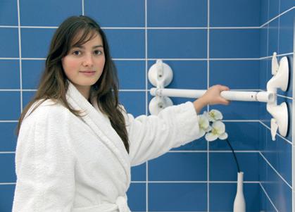 Para un apoyo adicional en el cuarto de baño, pasillo, escalera, cocina, etc. Hecho del plástico fuerte (PVC). Extra agarre a través de la superficie corrugada. • diámetro tubo 3,5 cm • distancia de la pared 7 cm • diámetro placa de cubierta 8 cm