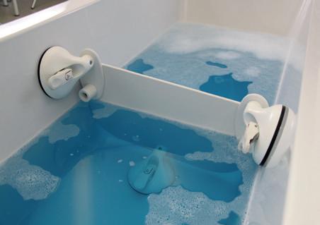 Práctico y cómodo. El biombo continuamente ajustable reduce significativamente el riesgo de deslizamiento en la bañera. El biombo también se puede utilizar como una tabla auxiliar en la pared de la bañera.