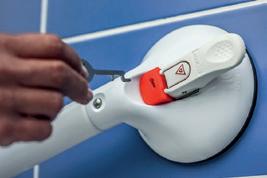 El indicador de seguridad prueba constantemente el vacío. Cuando el indicador de seguridad está avellanado en el mango, la barra de seguridad ha alcanzado la fuerza de tracción óptima y el mango está completamente cargado. Si el indicador de seguridad se eleva y el borde rojo se hace visible, las ventosas deben desconectarse y volver a apretarse. Esta versión también es muy adecuada para personas con visión limitada, ya que el indicador de seguridad es muy tangible en caso de pérdida de vacío.