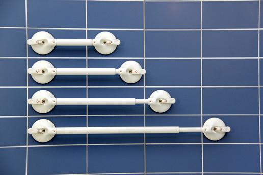 Todos los soportes de pared son de material de alta calidad y están controlados según las normativas de TÜV. Tienen una gran adherencia (diámetro ventosas 120 mm) y están disponibles en diferentes longitudes. Fácil de fijar a superficie lisa y plana. Mobeli® es la única marca original de asideras móviles que continuamente amplia su gama de productos. Por ejemplo: soportes de pared, ayudas para la movilidad, sistemas de apoyo, biombo de bañera, asidero de bañera y accesorios. Los soportes de pared Mobeli® vienen con un indicador de seguridad. Un desarollo revolucionario en que el estado de vacío es permanente y por lo tanto la resistencia de la adherencia, realmente se mide y se controla. En cuando el indicador de seguridad sube, las ventosas tiene que ser fijado otra vez. Una sensación de seguridad!