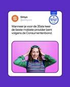 A true case of practicing what you preach. With Simyo, you get the best mobile provider on the strongest network in the Netherlands (KPN) at a sharp price. No dropped calls. No weak connections. Just rock-solid service. And that’s exactly what you’ll see in our fully integrated marketing and content strategy. Because staying connected should be simple. At Simyo, ‘Waarom duur doen?’ isn’t just a slogan, it’s a mindset. We inspire, advise and activate customers to live by it, in telecom and beyond.