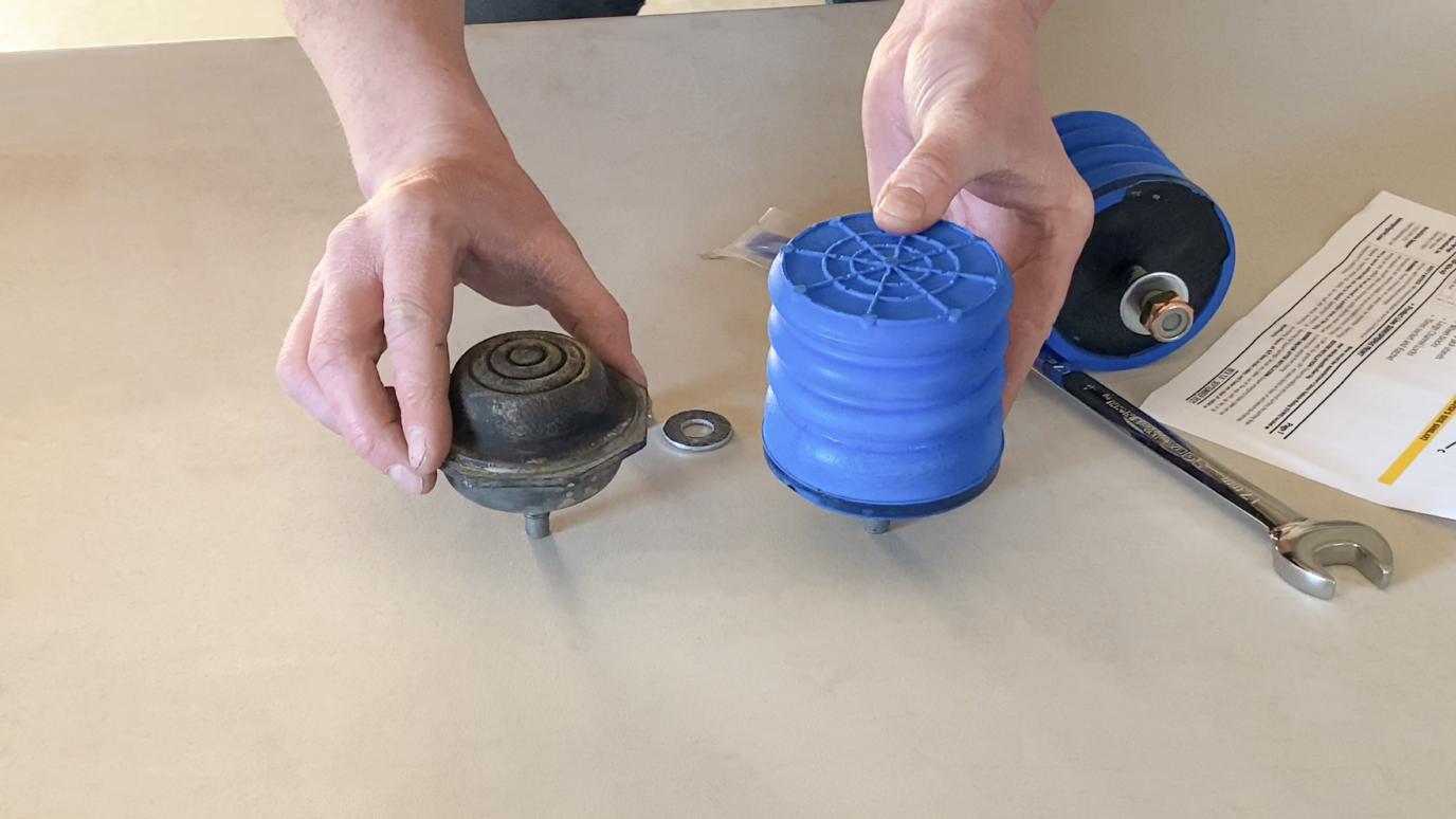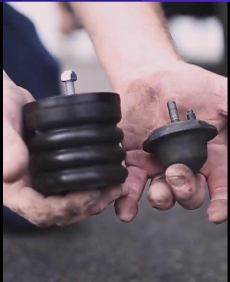 Simply put, SumoSprings are oversized bump stops that replace your vehicle’s factory bump stops. Shown right is a size comparison between the old bump stop (right) and the SumoSpring replacement (le ). SumoSprings are over twice the size.