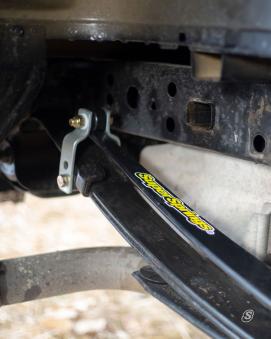 the Solo option, the SumoSpring is attached on the frame only. One connection point allows the truck to move up freely for travel and then so en and dampen the harsh rebound on impact.