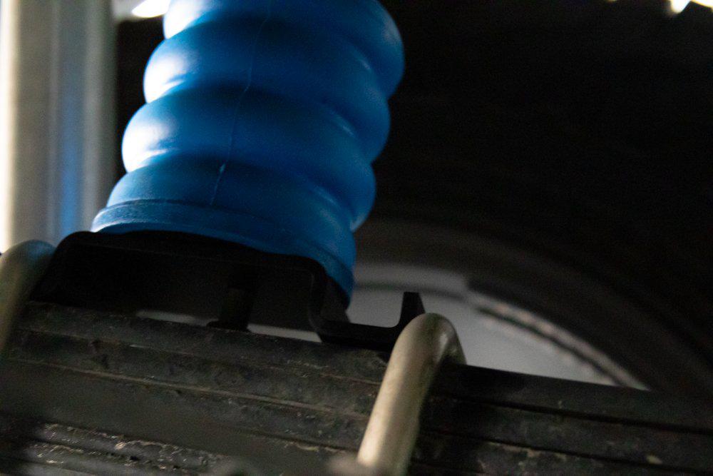 When you replace a factory bump stop with a SumoSpring, you’ll immediately notice that there’s much less air space between the vehicle’s body frame (top) and it’s chassis (bottom).