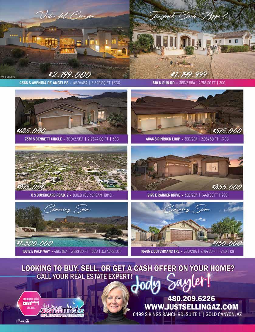 Robin Rotella Realty Team, 6641 S. Kings Ranch Rd. #2, Gold Canyon AZ 85118, or Lori Blank & Assoc., 6140 S. Kings Ranch Rd., 6140 S. Kings Ranch Rd., Gold Canyon AZ 85118, 10AM2PM, Mon-Fri, or contact Pam Burks, 480-267-2286.