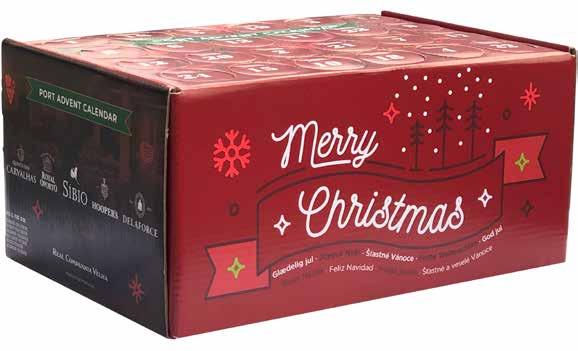 INDHOLD: 5 CL. GLASFLASKER MED FORSKELLIGE24 PORTVINE Lad dine kunder gå på opdagelse i portvinens verden ... Portvin fra 6 kongelige og højtanerkendte portvinsmærker: Delaforce, Royal Oporto, Quinta das Carvalhas, Síbio, Hooper’s og Real Companhia Velha. PORTVINS Julekalender 2022 Alle priser er incl. moms. Vi tager forbehold for evt. trykfejl leveringssvigt og udsolgte varer. I - PRIS INKL. MOMS Pr. fl. kr. 435,VEJL. UDSALG PR. FL. KR. 599,95