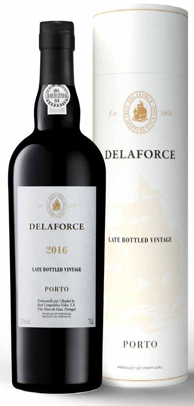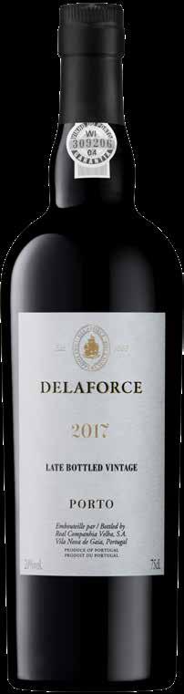 4 DELAFORCE LBV 2017 . Portugal Mørk, violduftende, lakridset og guddommelig frugtintens. Sødmefuld og slubrende saftig. 94/100 Mad og Monopolet 93-94/100 Houlberg 93/100 Winewherever, Rasmus Christensen 91/100 Vinbladet 90/100 Vinhulen.dk Vejret i 2017 var en ren kopi af legendariske 1945. Det ses tydeligt på pointene fra anmeldernes årgangsskemaer: 98 POINT Wine Spectator 97 POINT Robert Parker 5 UD AF 5 “MAGNIFICENT” Decanter “CLASSIC” For the Love of Port Nyskænket fra flasken sejler LBV 2017 fed
