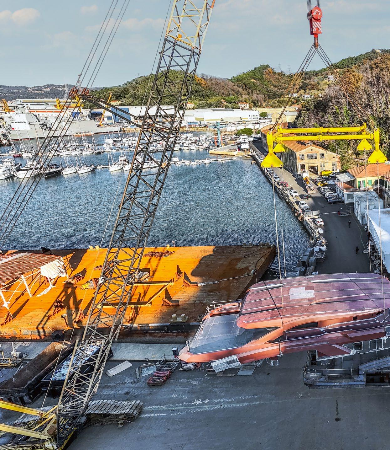 Other outdated buildings are due to be demolished, which will free up over 1,200 square metres of space. New machinery includes a 400-tonne crane for major hull lifting operations, a 100-tonne gyroscopic Terex crane, and upgraded electrical and utility systems to accommodate heavier production demands. Further investments include a specialised metal-forming machine and enhancements to the mechanical workshop in Arcola. The entire industrial investment plan is set to last through 2027.