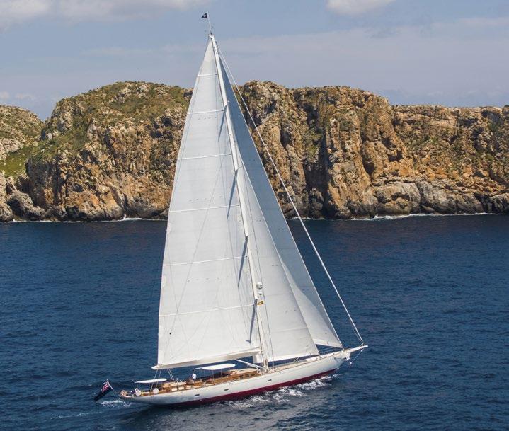 For Doyle, times have changed in big rig design, with an emphasis on practicality rather than pushing materials to the limits: “The relevant question now is not how you would tackle such a project, it’s why? You can’t get under Panama, you can’t fly a spinnaker, you need an army of people just to get a sail up and down, and there’s a lot of heavy engineering required to handle half a football pitch of sail with a couple of sheets.” It is here that innovations such as the DynaRig stepped in. Developed by Dykstra Naval Architects based on an original 1960s concept, the freestanding, square-riggerinspired spars and sail plan showed how super-sized sailing yachts could fly large areas of sail without requiring enormous crews. The concept arguably became a victim of its own fame as few owners wanted to be seen copying an iconic design. But the rig did eventually find its way onto a new project in Black Pearl, and will subsequently feature on the 58-metre Adventure Sailing Cat multihull project in build at Echo Yachts (see sidebar).