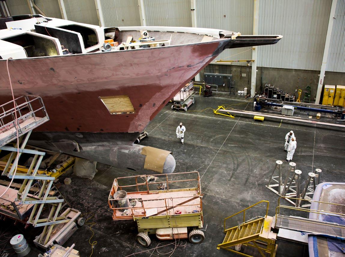 With the new construction shed housing the Seamore 34 and Project Hanaa already operational, Antonini has earmarked a further €5 million to increase production capacity and efficiency. One of the most important investments will be redeveloping a second hangar, which will see its footprint expanded from 62 to nearly 70 metres in length.