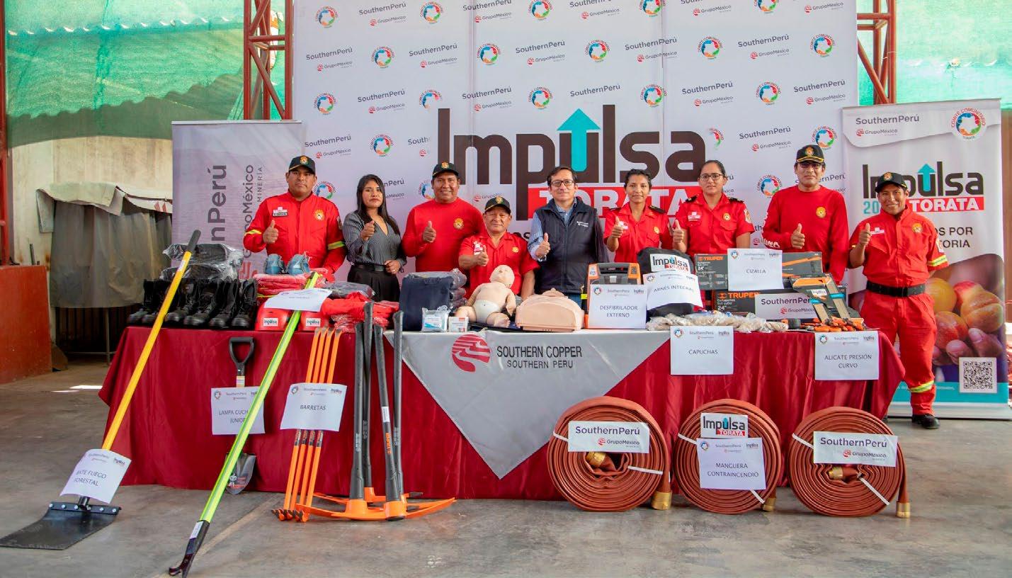 Southern Perú y el Comité Comunitario de Torata entregaron capital semilla en especies a la compañía de Bomberos Virgen de la Candelaria, que permitirá mejorar la eficiencia en la atención de emergencias en este distrito en beneficio de unos 6 mil residentes del distrito.