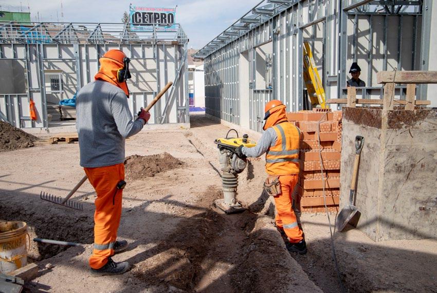 Hasta el momento se ha trabajado en el movimiento de tierras, zanjas para las instalaciones eléctricas y data, vaciado de lozas de concreto, sistema de drenaje, estructuras metálicas, coberturas y aulas de drywall que contarán con aisladores de calor y sonido para un mejor desarrollo de la jornada escolar.
