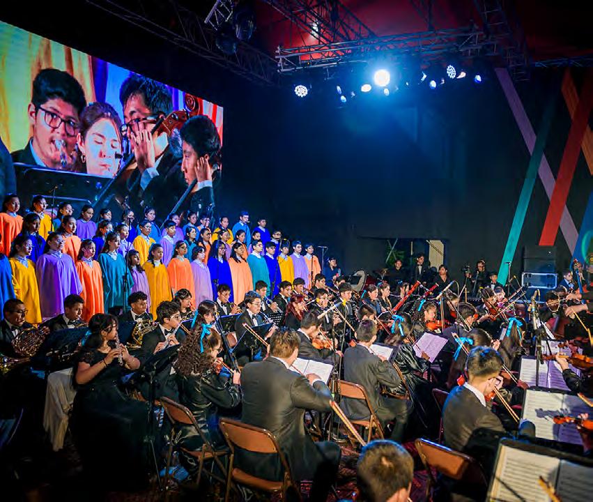 valores como la disciplina, la autoestima y el trabajo en equipo, a través de cinco programas: iniciación musical, coral, instrumental, Puro Perú y preorquesta.