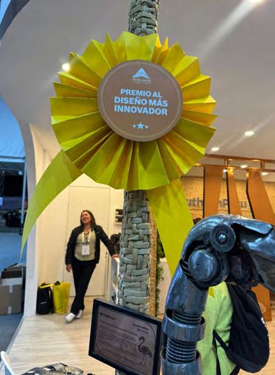 El stand corporativo de Southern Perú obtuvo el “Premio al diseño más innovador”, en reconocimiento a su creatividad y aporte a la sostenibilidad. En el primer nivel se exhibieron muros y logotipos elaborados con plantas de totora, especie que crece en los Humedales de Ite.