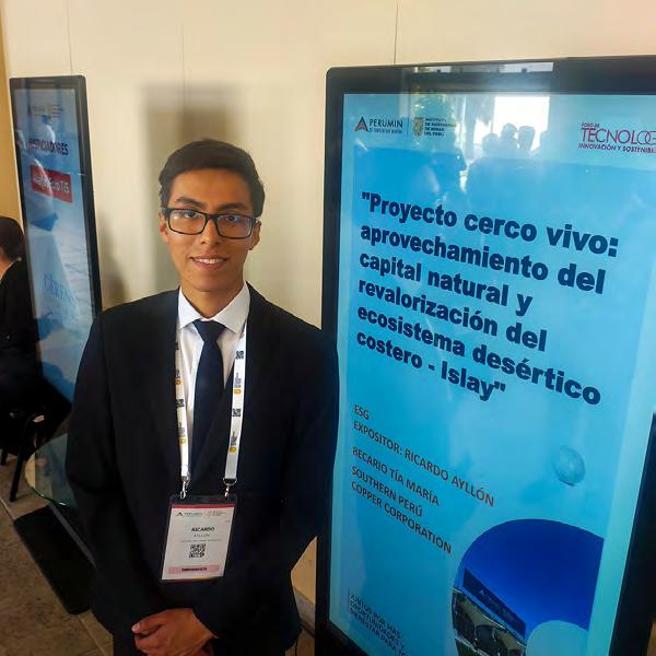 Por su parte, el Ing. Ricardo Ayllón Merma, becario de Desarrollo Comunitario en el Proyecto Tía María, presentó el “Proyecto cerco vivo”, orientado a la instalación de plantones de huaranguillo como barrera natural, gracias al trabajo conjunto de 200 trabajadores locales y la empresa.