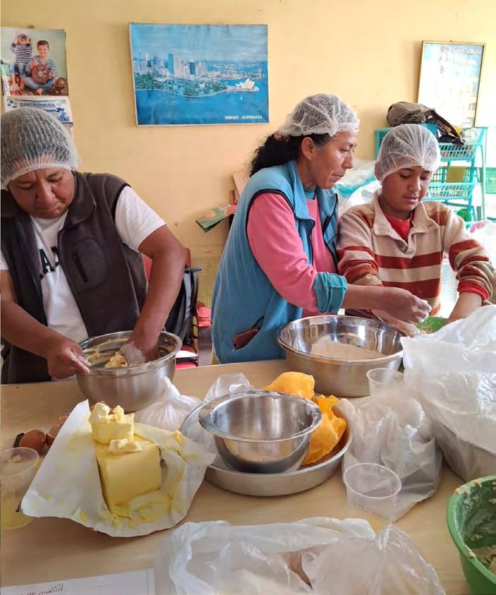 De igual manera, en el sector de Lambramane, los vecinos conocieron las etapas de producción y los costos asociados a la preparación de galletas de mantequilla, fortaleciendo sus habilidades culinarias y su potencial para emprender.