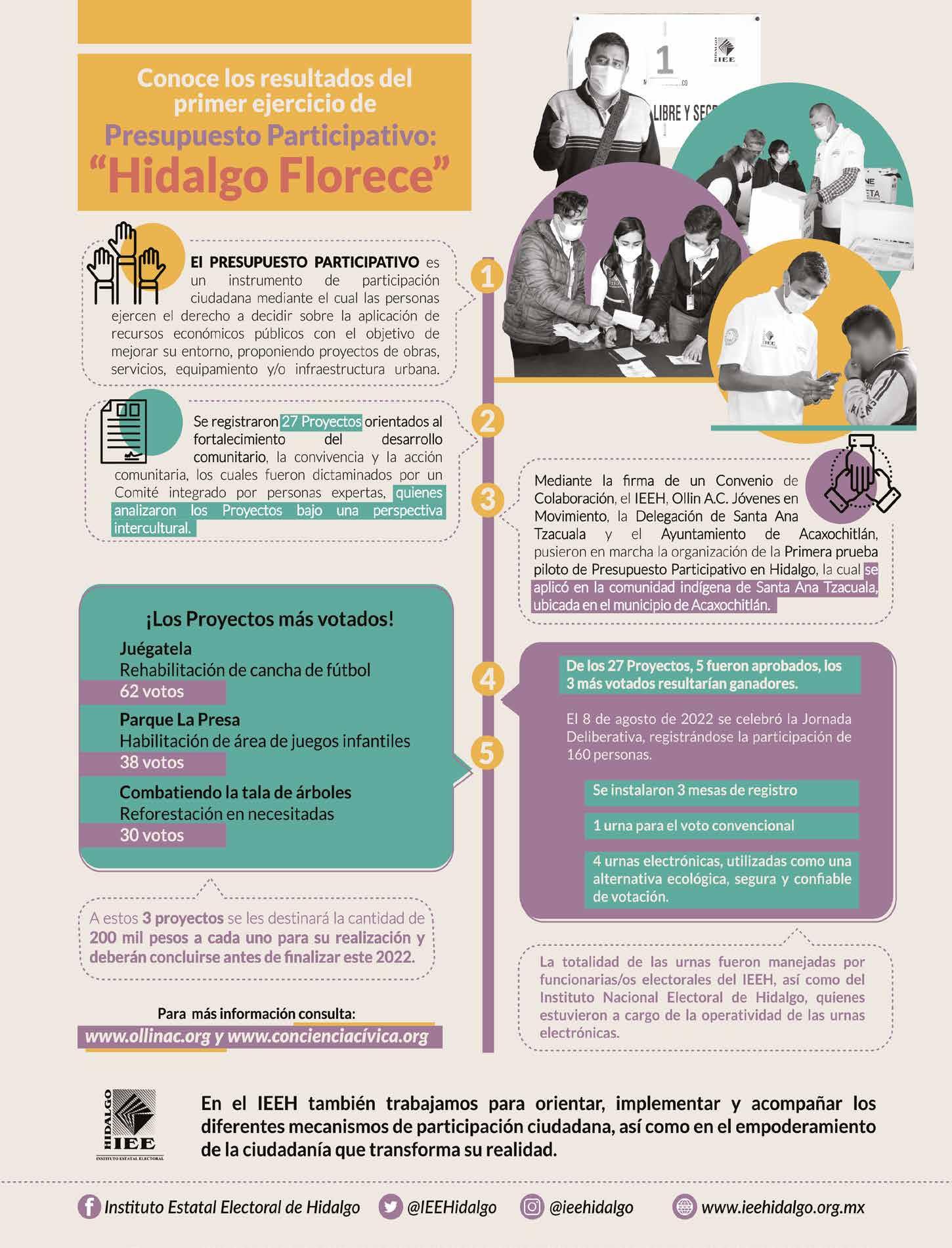 Destacó que gracias a la confianza de la población y buena administración de los recursos públicos se ha logrado realizar una inversión sin precedentes de más de 50 millones de pesos; en benefi cio de las colonias y comuni dades, como es el caso de las instalaciones de los plante les COBAEH de Santa María Quelites y San Ildefonso.