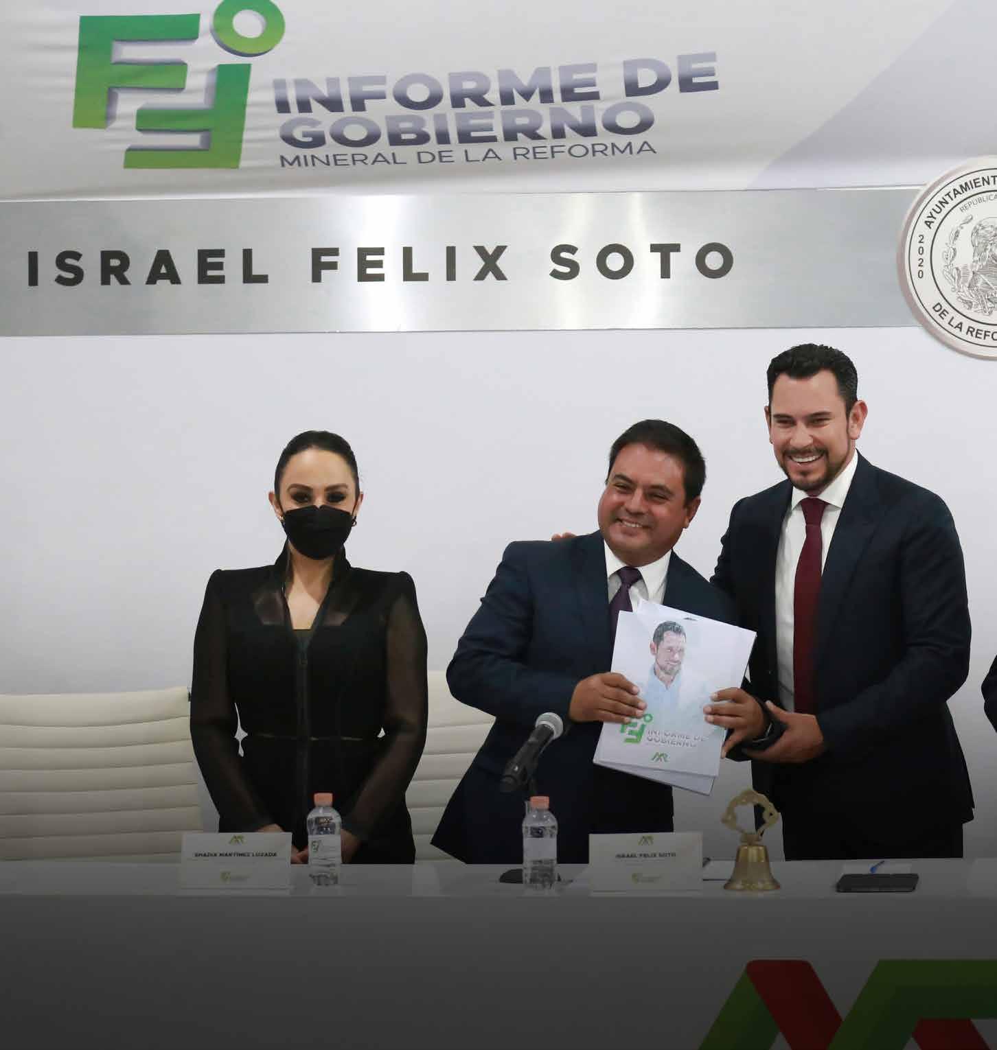 El presidente muni cipal de Mineral de la Reforma, Israel Felix Soto, rindió su segundo informe de gobierno, tras 20 meses de ges tión, destacando los avances alcanzados en beneficio de la población mineralense, impul sando ejes prioritarios como desarrollo económico, educa ción, atención a grupos priori tarios, entre otras iniciativas impulsadas durante el segundo año de su administración.