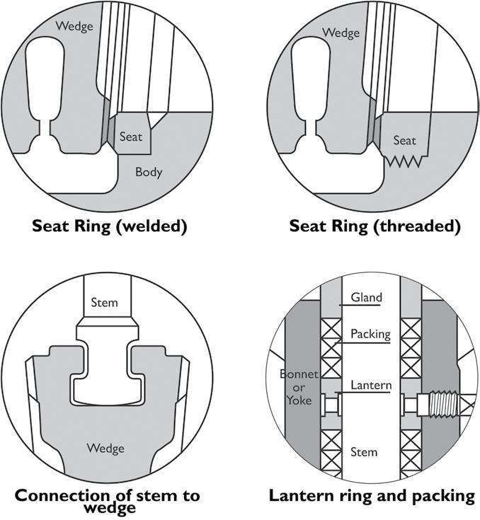 Stellite 6 faced both seat and wedge/disc to prevent seizing and galling.