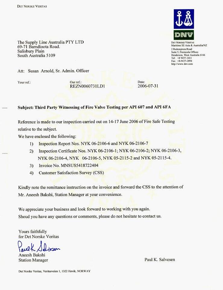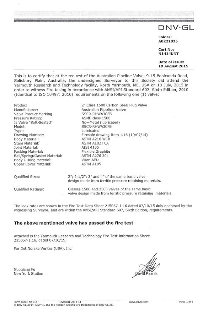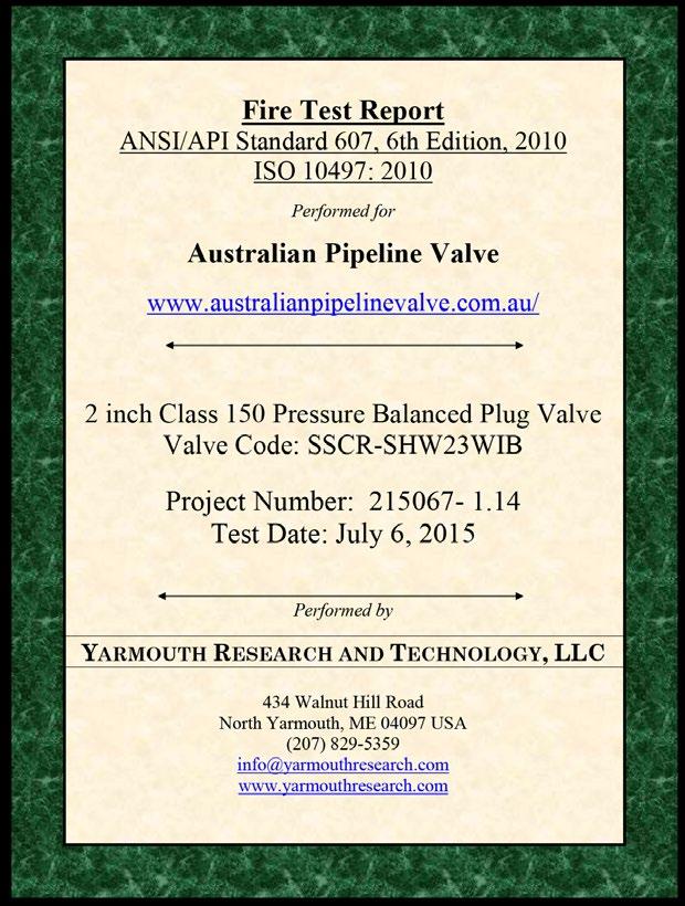 - Specification for Fire Test for Valves