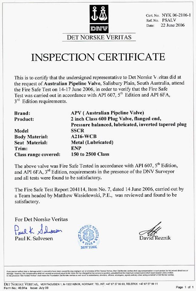 3. Australian Pipeline Valve ‘Standard’ plug valves are not designed with special devices to withstand a sudden thermal jump (thermal shock).